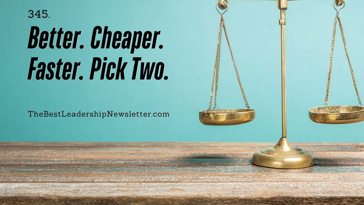 In leadership, as in life, you can't have it all. There are trade-offs for every choice. You want it better, cheaper and faster. You only get two…