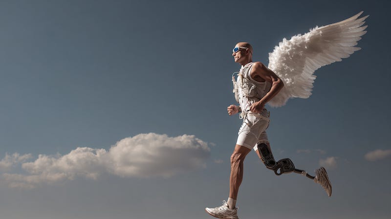 He was 125 miles into an Ironman triathlon, wearing a prosthetic right leg, running with fortitude and looking happier and more emboldened than I had felt all day.