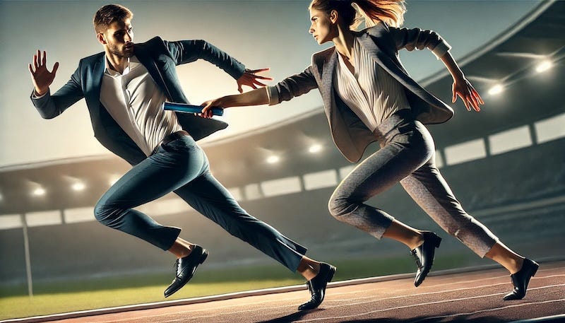 Translating this to your business, one department has a responsibility to do something and, once completed, they hand it off to another department to fulfill their part of the process.