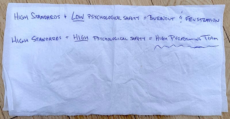 I see this dynamic of high standards and psychological safety play out everywhere. If you pay attention to team dynamics, you’re going to see it too.