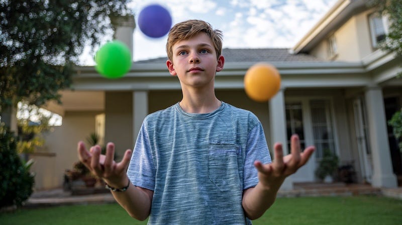 I started learning to juggle like any 13-year-old would: I tossed a bunch of balls in the air and tried to keep them moving, but all they did was fall to the ground.