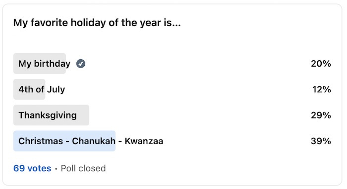 Your favorite holiday of the year is… Christ-Chan-Zaa (39%)!
